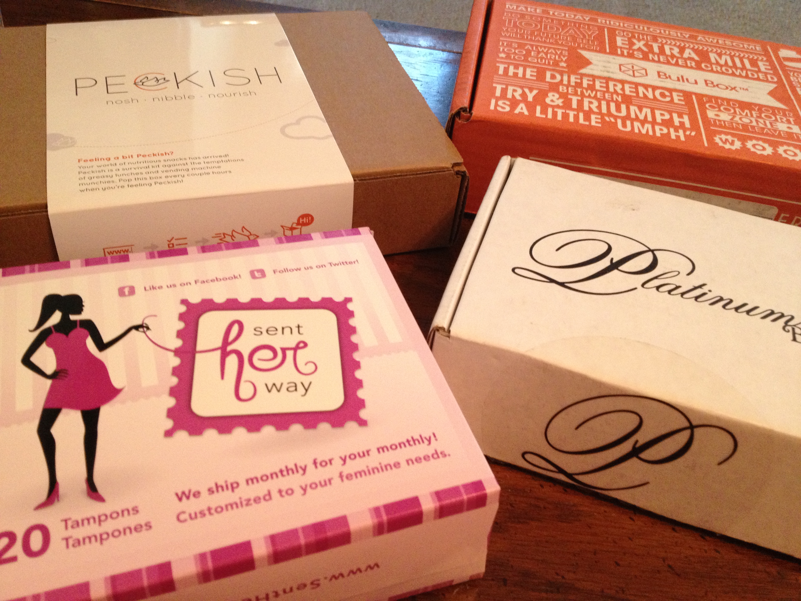 Posts coming up: I just posted on Love With Food last night, and prior to that on Ipsy and JackedPack. You can view those posts by clicking the highlighted links. My new few posts, starting this afternoon will include: Out of the Box Sampler, Sent Her Way, Peckish, BuluBox & FitBox by Platinum Box!