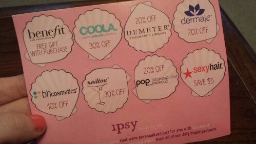 First off, we have the Beach Beauty theme card, as Ipsy sends a new theme card each month with the discount codes on the back.