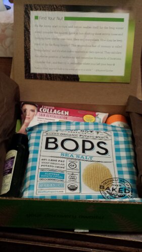I opened up my inner box and saw a few of the products and thought “hmm, looks like a fair combo of snacks and beauty products..”