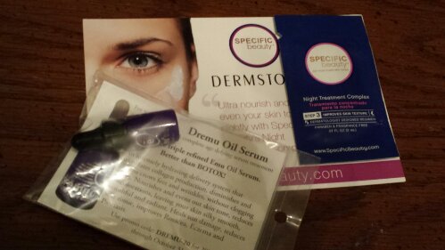 And of course, the freebie samples! They included Dremu Oil, which I’ve received before and actually LOVE. I’ve been applying it to my face after showering/exfoliating before bed and it makes my skin glow. Especially if you have any dry patches, it helps to smooth and heal them. The other product is called Specific Beauty Night Treatment Complex, which I believe is a smoothing, retinol style nighttime cream.