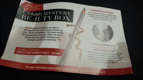 Each month, they have a specialty curator who chooses out the items that will be shipped out. This month was Lauren Feist, a celebrity makeup artist, and her ‘favorite pick’ was the Cargo High Pigment Pencil in Brown.