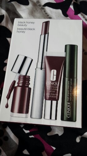 Okay, so this was actually an unusual purchase for me. I found this Clinique Black Honey Beauty Kit and was just in total awe of the color. I never usually opt for brands like Clinique, Estee Lauder, etc, just due to the price tag and my love for other brands such as Urban Decay, Stila, Too Faced and Benefit. However, I just had to give in for a few reasons: It was only $25, the color was TO-DIE-FOR, and I already know the mascara is great from testers.