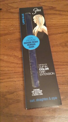 I received a bold blue Sultra Hair Palette Clip-In Color Hair Extension. I’m not a huge fan of the color (as I would have rathered a pink or purple) however it is definitely better than green or orange. It’s also made from real hair, so it curls and straightens with an iron.