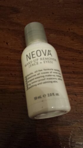 Here we have NEOVA Make Up Remover Face and Eyes, which gently and thoroughly dissolves makeup—even waterproof mascara (full size worth $18).