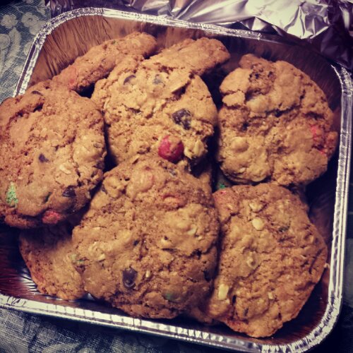 So, I baked these homemade Chocolate Chip Oatmeal M&M Cookies up for a cookie exchange at work.