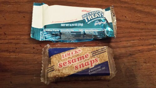Rice Krispie Treat (I feel like I’m 5 again) and a new snack- Loucks Sesame Snaps.