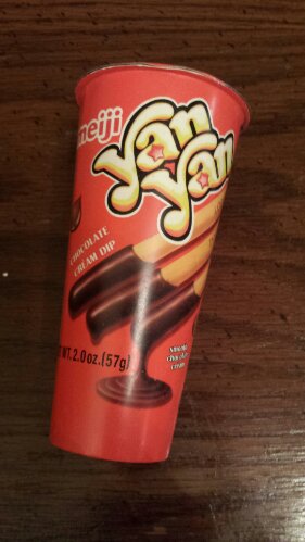 Here we have a to-go container of Yan-Yan, which are cookie-like bread sticks that you dip into chocolate sauce. So simple and delicious, with great packaging.