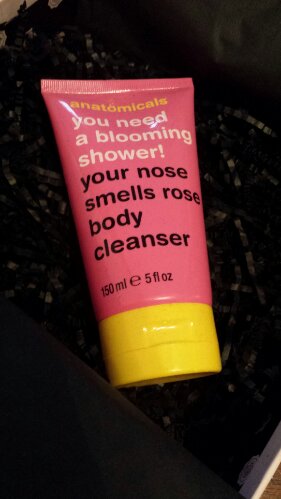 I’m actually pretty excited about this next product. because it is HUGE. This Anatomicals “You Need a Blooming Shower” in the scent “Your Nose Smells Rose” is a bath gel and body cleanser. It has a nice rose fragrance and looks like it’ll last a while.
