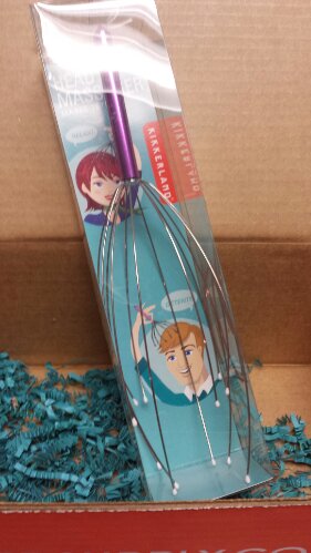 First up, and one of my favorite items of the box is this Kikkerland Head Massager! Such an odd-looking and simple object, this head massager really works and feels AWESOME. It has a cute pinkish-purple handle, and you can use it yourself or for someone else.
